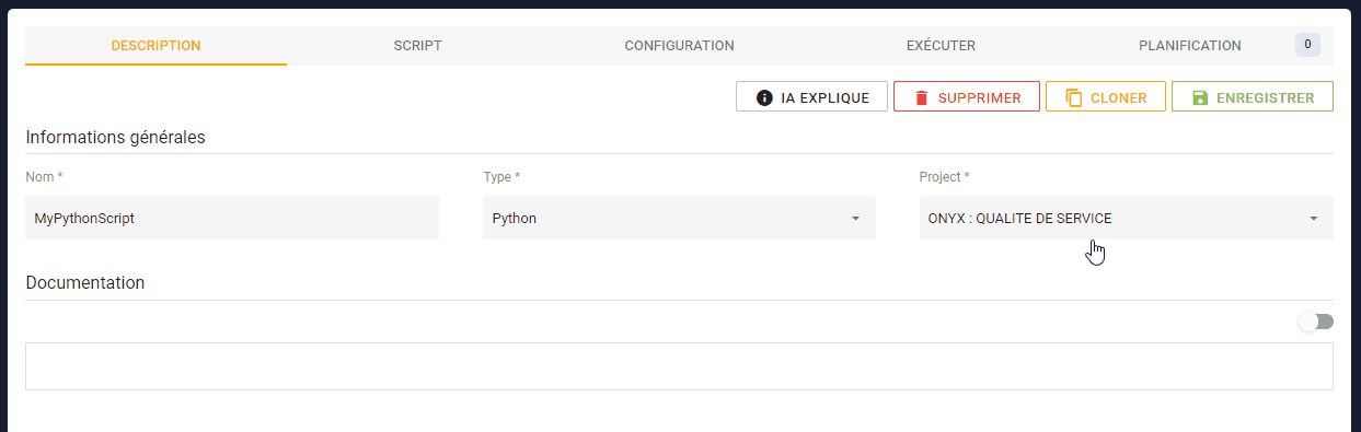 Chaque composant possède un champ "Project" dans le volet "DESCRIPTION". Lorsque ce champ est sélectionné, une liste de l'ensemble des projets regroupés par UO s'ouvre. Une fois que le projet cible est sélectionné, il ne reste plus qu'à enregistrer.
